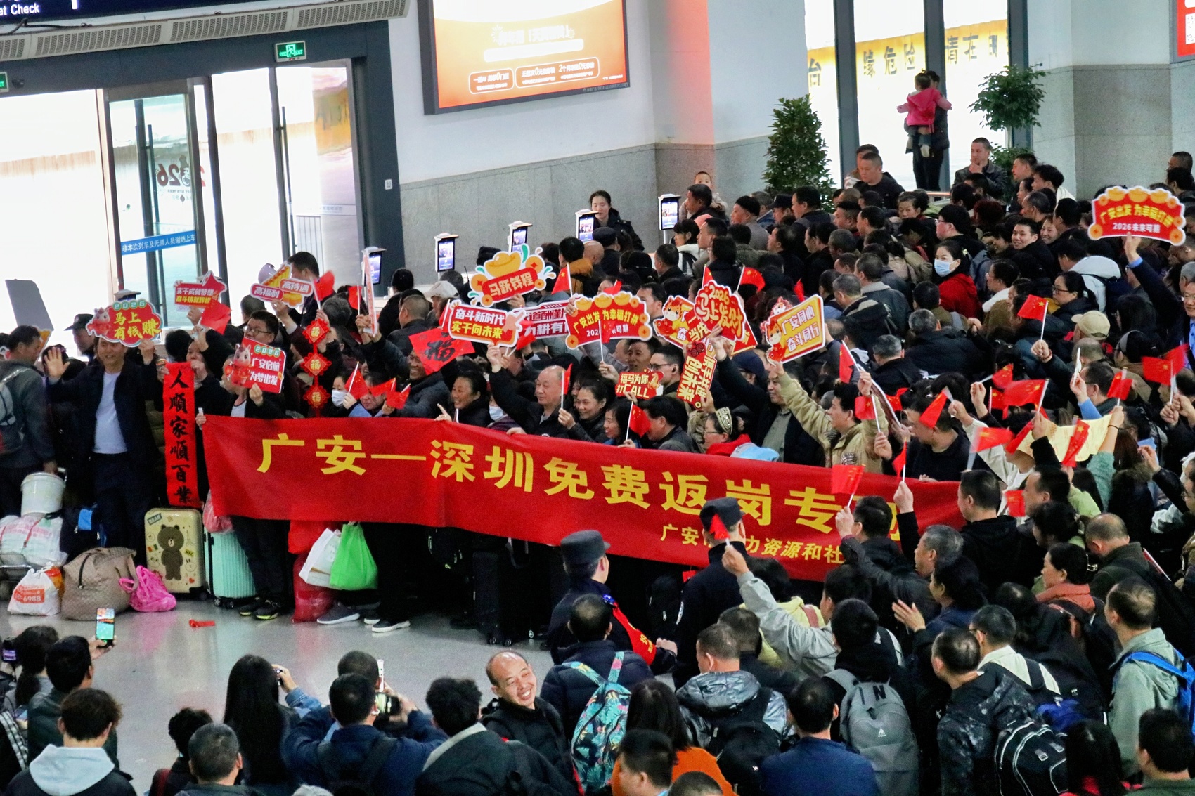 2月25日,广安站、广安南站先后开出Z220次、K488次两趟免费返岗专列,满载着1108名广安籍务工人员以及家乡特产,奔赴深圳、福州两大就业集中地,开启新一年的奋斗之旅。