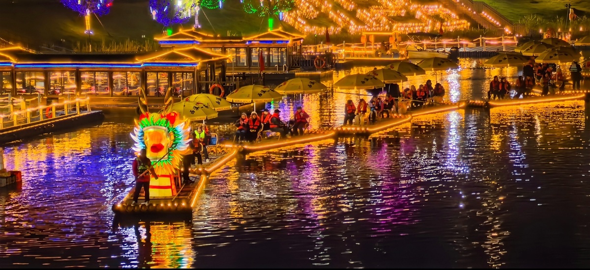 2月15日,天气微寒,广安賨城里西溪河畔却热闹非凡。人们在这里感受年味,体验“西溪一条龙”特色游船竹筏,以此迎接马年春节。