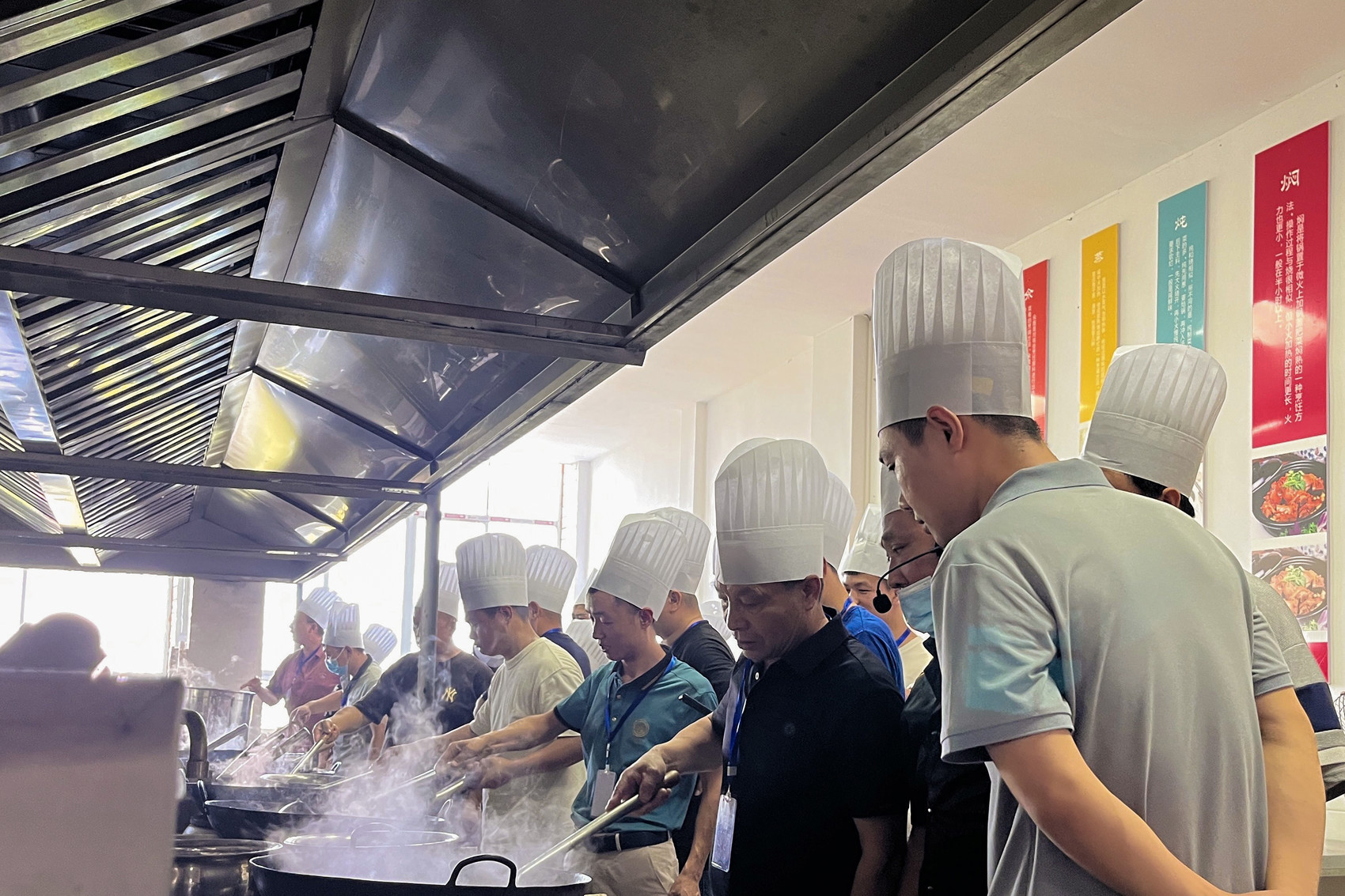 当天,炼油、熬高汤……培训现场有条不紊,学员们上手制作,不时交流学习心得,现场学习氛围浓厚。