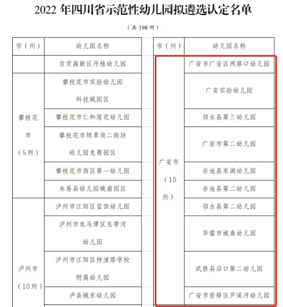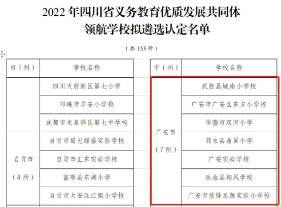 广安市多所学校入选四川省示范性幼儿园、义务教育优质发展共同体领航学校、示范性普通高中拟认定名单!