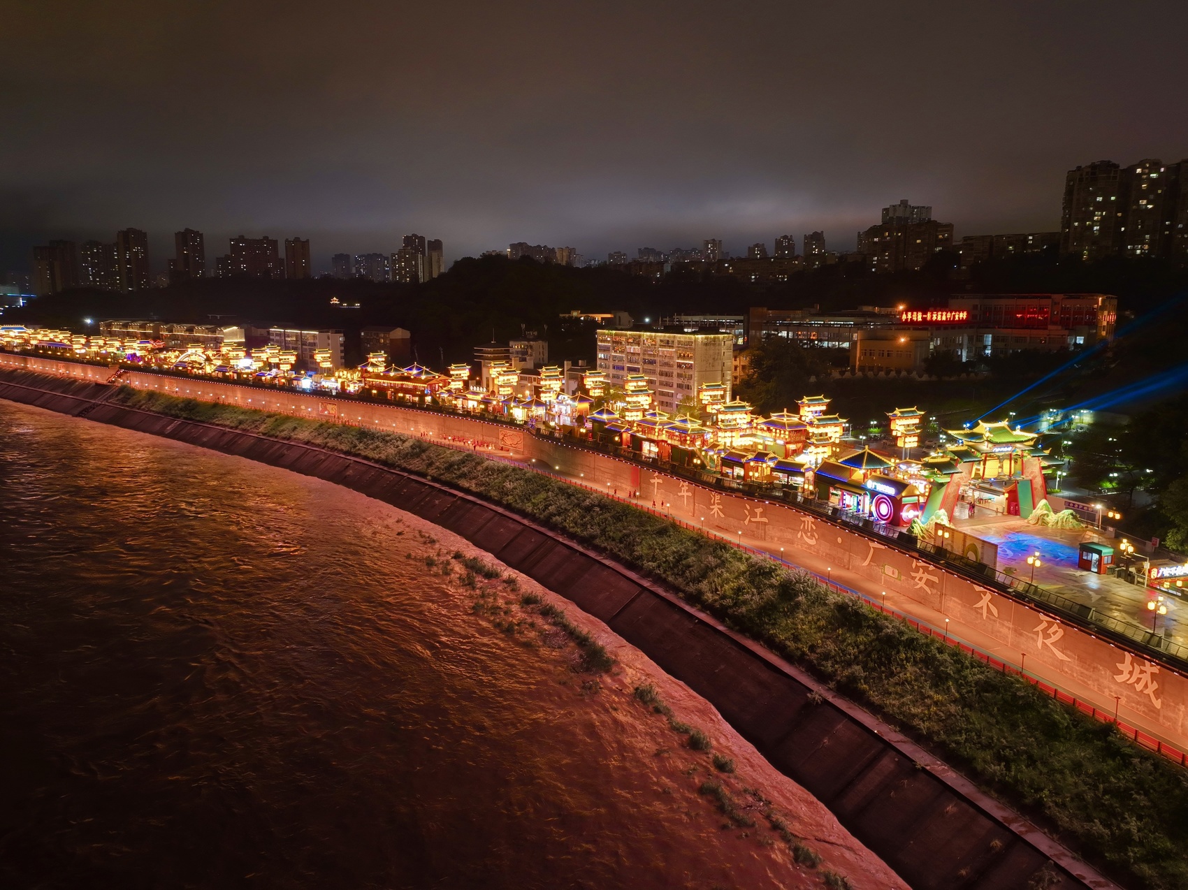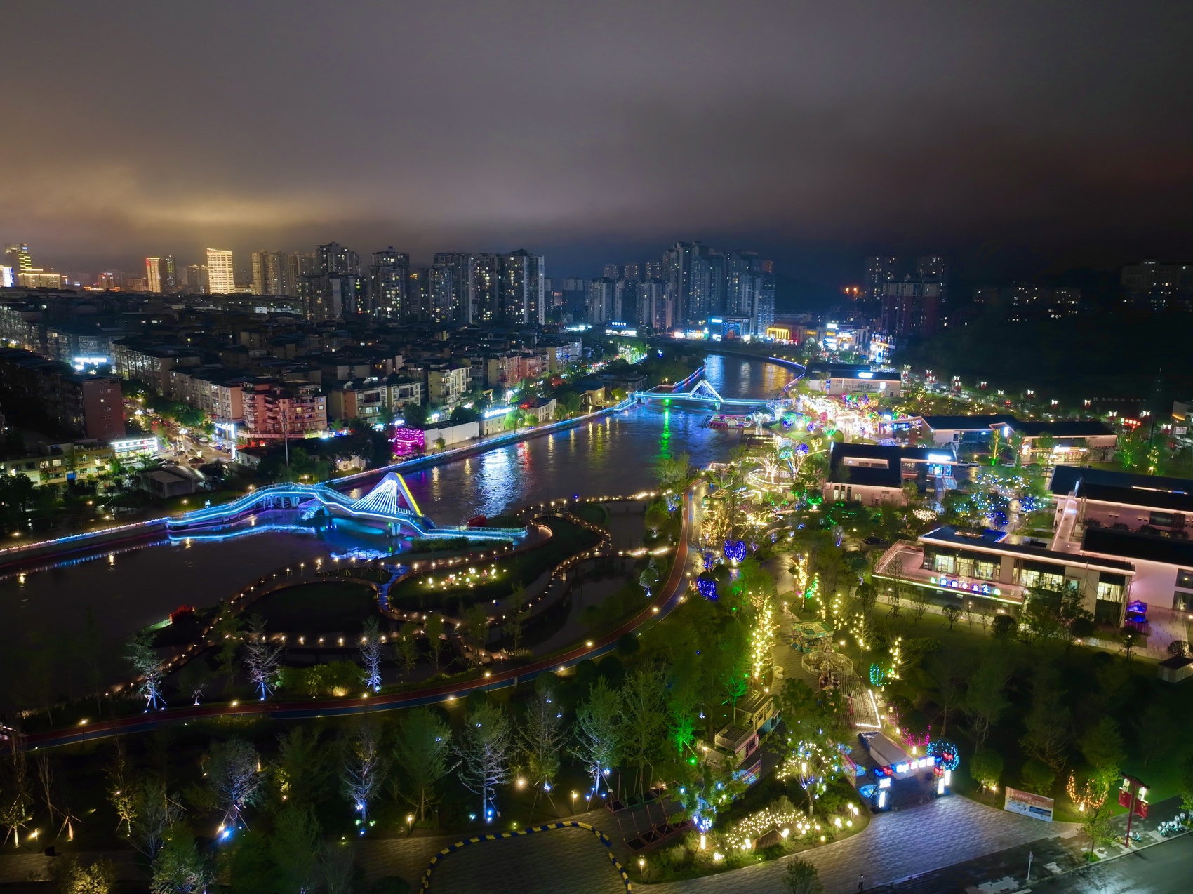 9月22日晚,航拍广安不夜城。(胡力文 摄)