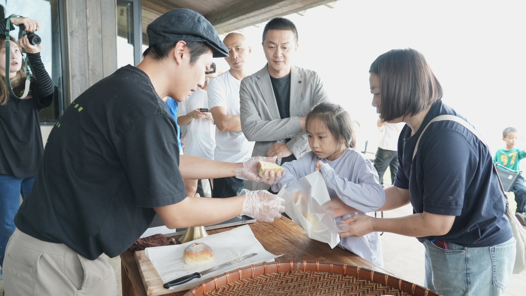 游客正在咖啡馆品尝面包(钟涛 摄)