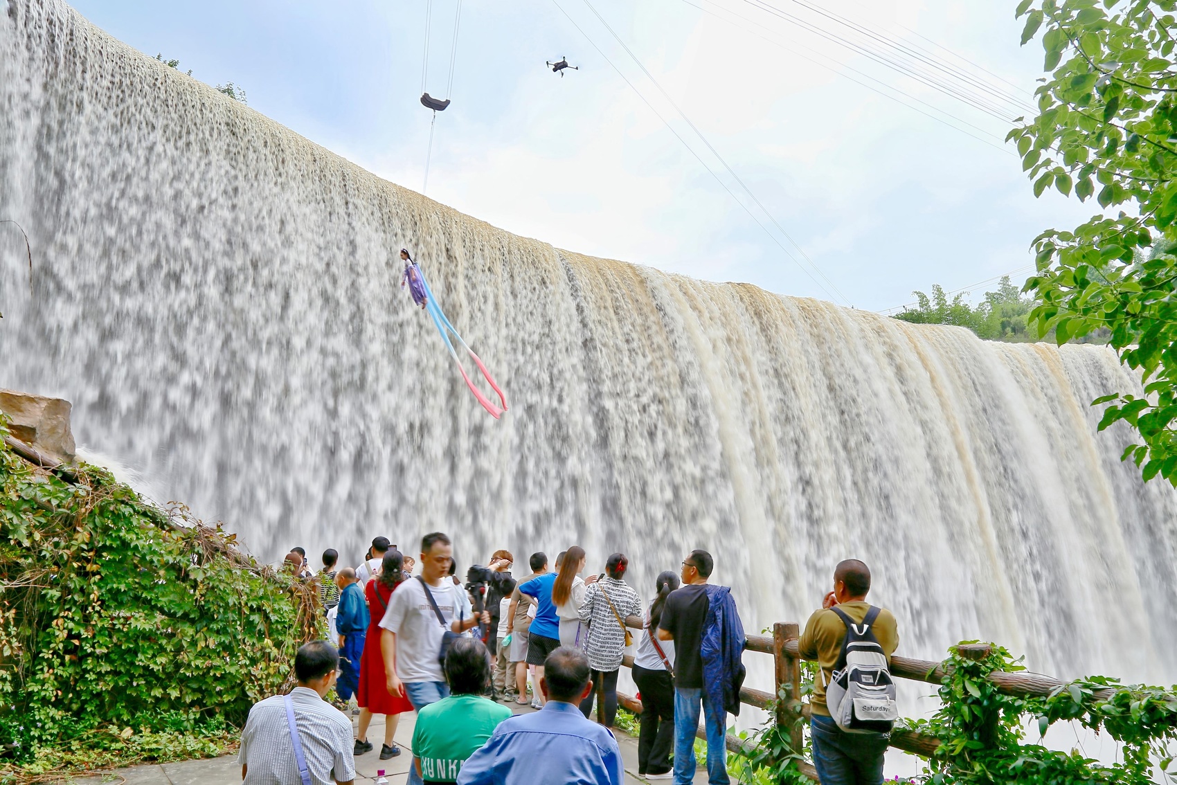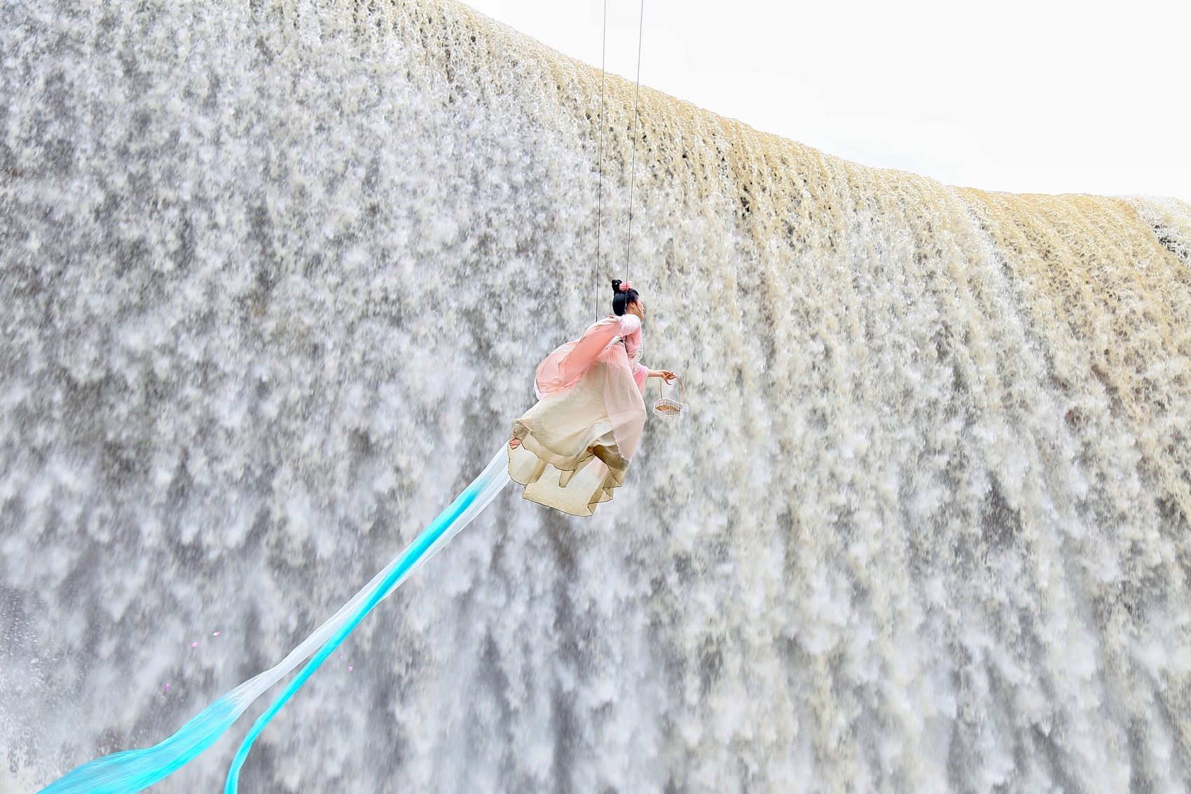 “背后瀑布溅起水雾,像走进仙境!”游客游白是武侠COS爱好者,直言这里的场景完全戳中她的喜好,“特别适合来还原喜欢的角色,体验感远超预期。”首次尝试威亚的陈静笑着说:“一开始紧张得手心冒汗,上去后被大瀑布的壮观景色震住了,太难忘了!”