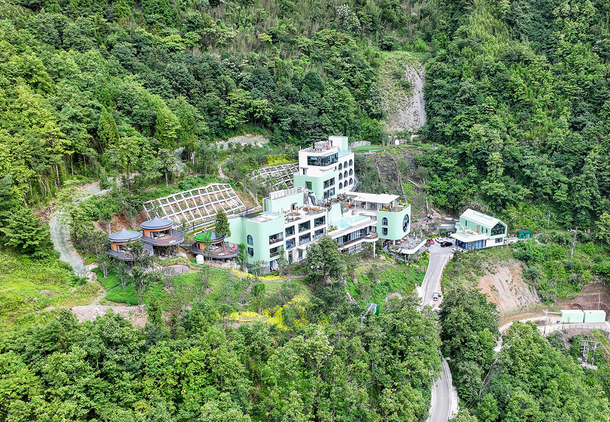 青山环抱下的原舍•嘿矿熊猫主题民宿(邱海鹰 摄)