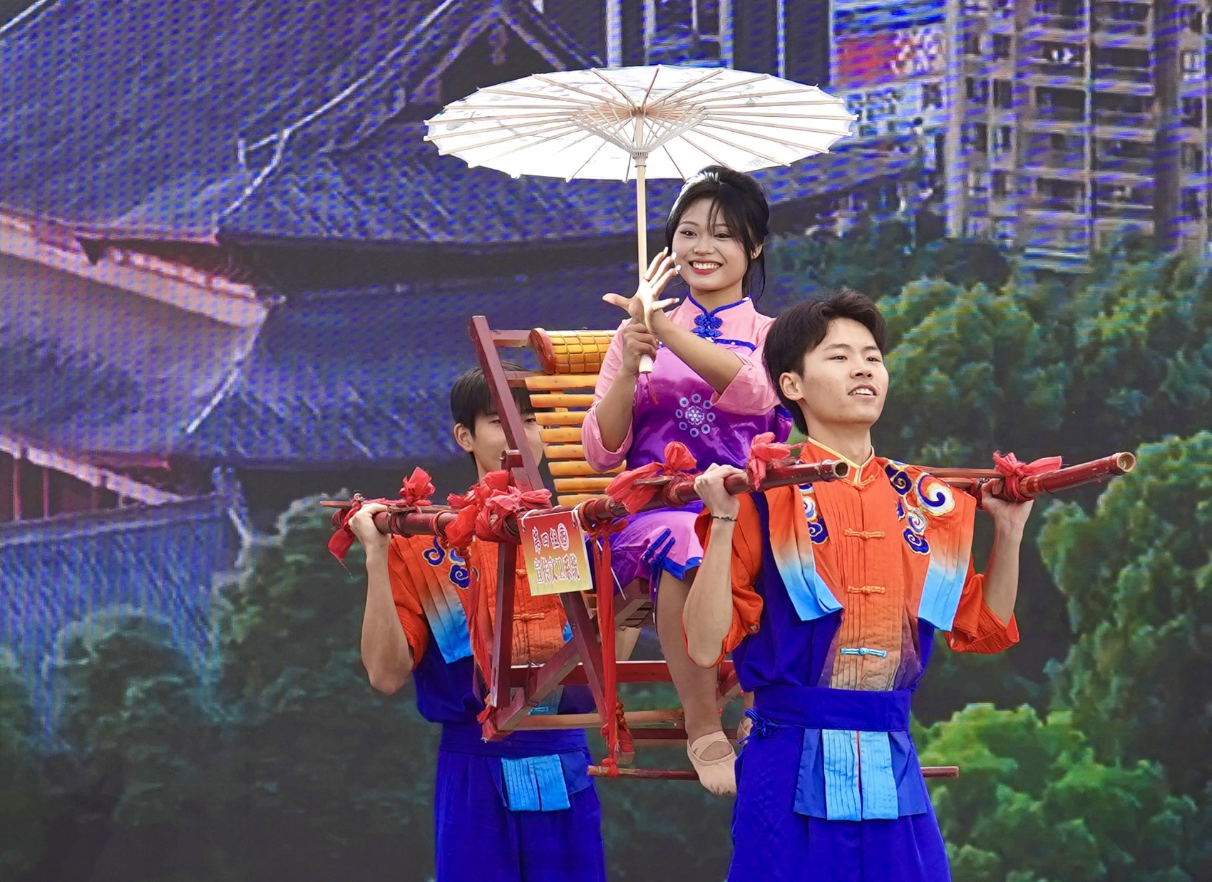 “华蓥山滑杆抬幺妹”非遗展演。(胡力文 摄)