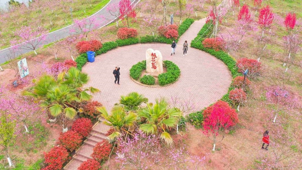 据桃花岛景区负责人介绍:“2月底的时候,岛上的桃花就已经开得很茂盛了,大量游客自驾或旅行团都开始来这儿赏花,日接待量最高达1万多人。”此外,今年还引进了绛桃品种,这种更加艳红的桃花种植在岛中央的观景平台,在一片粉色桃花中颇为显眼。