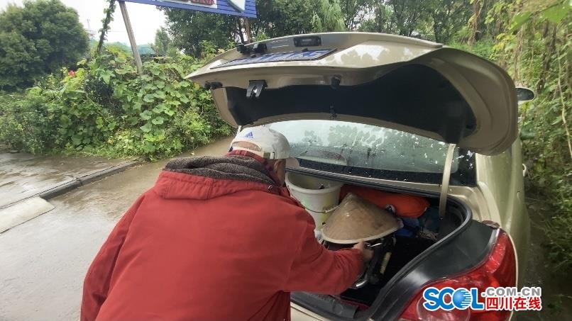 石元祝打开后备箱,川观新闻记者看见里面装着鱼竿、座椅、塑料桶等工具。原来,喜欢钓鱼的石元祝拿到驾照后,便经常约上侄子石平或朋友开车去钓鱼。