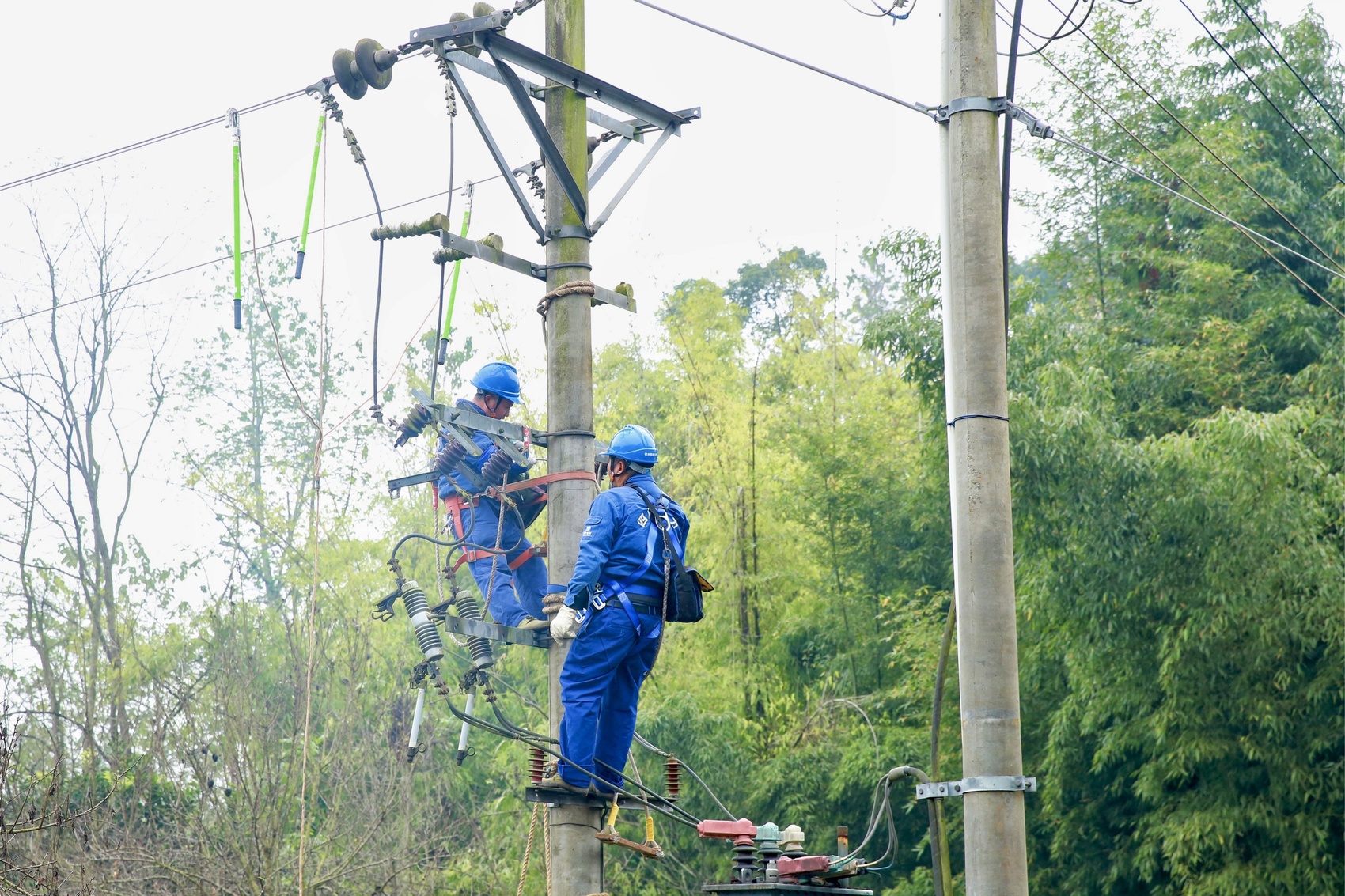 工作人员对供电设备进行检修。(国网广安供电公司供图)