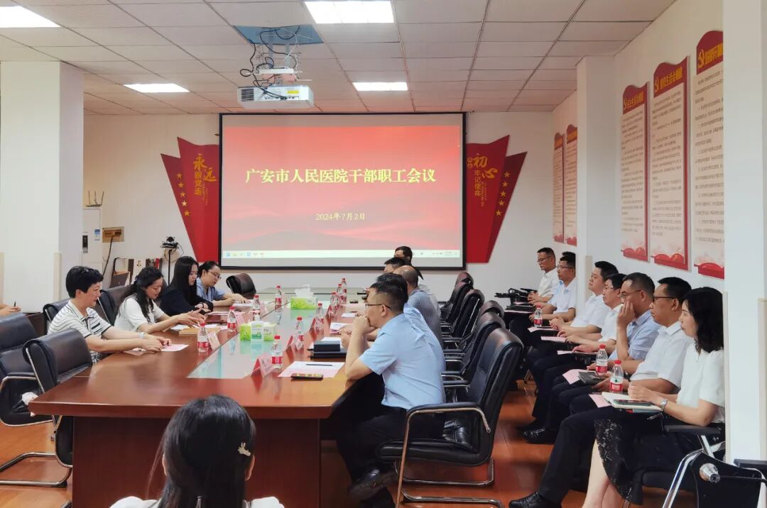 四川在线消息 7月2日下午,广安市人民医院召开干部职工会议。市委组织部副部长、编办主任刘文正,市卫生健康委党组书记、主任蒋志虎,四川大学华西医院组织部部长王淼等领导出席会议。市人民医院党委书记李昂主持会议。市人民医院全体领导班子成员、职能部门负责人参加会议。