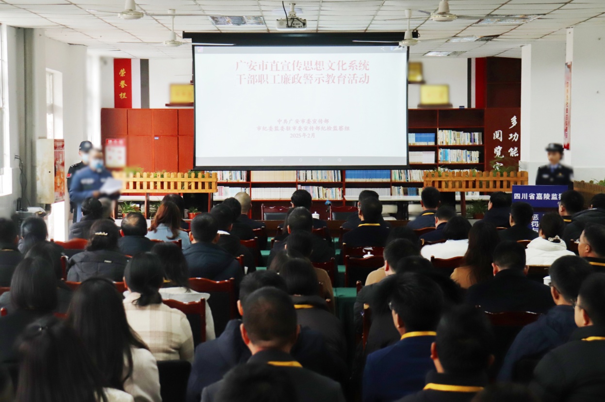 四川在线消息 2月18日下午,广安市委宣传部会同驻部纪检监察组组织宣传思想文化系统科级及以上干部,走进四川省嘉陵监狱开展警示教育,在“行走的廉洁课堂”中,让身心接受浸润洗礼。进一步推进党纪学习教育常态长效、走深走实,引导广大党员干部知敬畏、存戒惧、守底线,营造风清气正的良好政治生态。