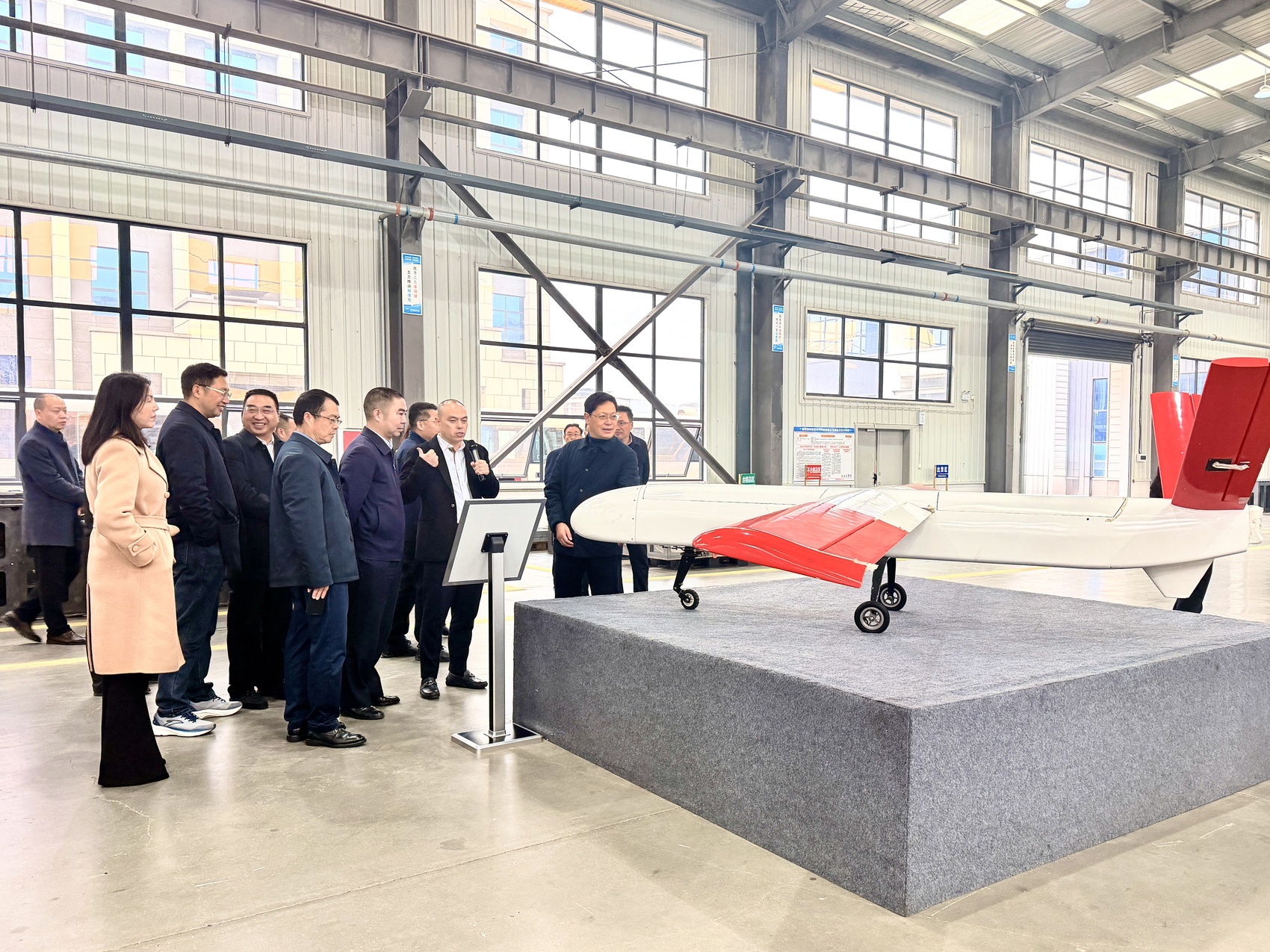 调研组正在四川领神航新材料科技有限公司听取介绍。(唐燚 摄)
