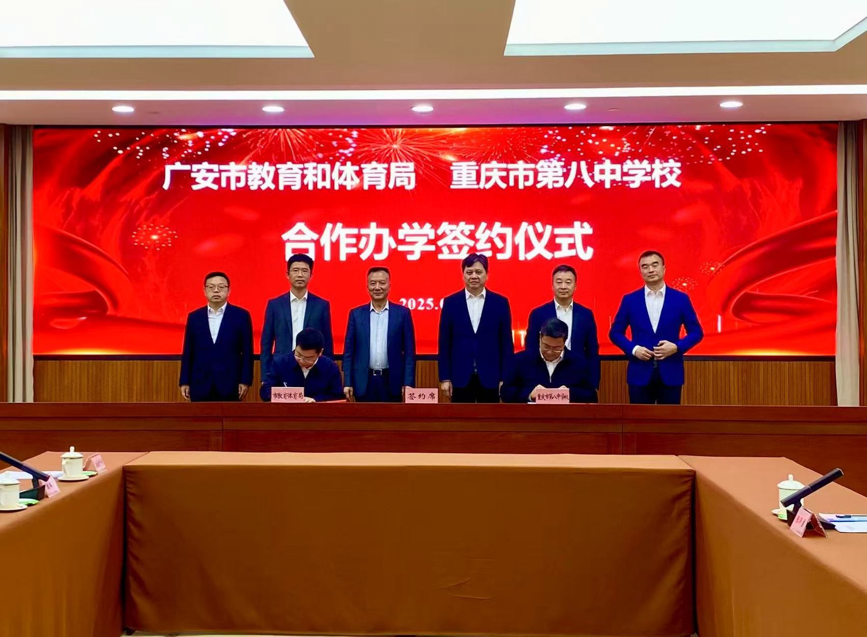 广安市教育和体育局与重庆市第八中学校举行合作办学签约仪式。(彭娟 摄)