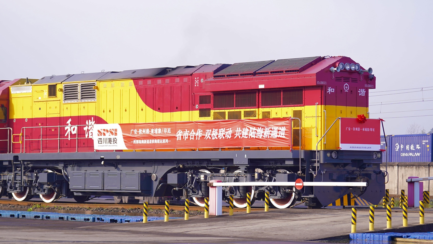 首列西部陆海新通道四川(广安)南向班列在广安站鸣笛启程。(胡力文 摄)