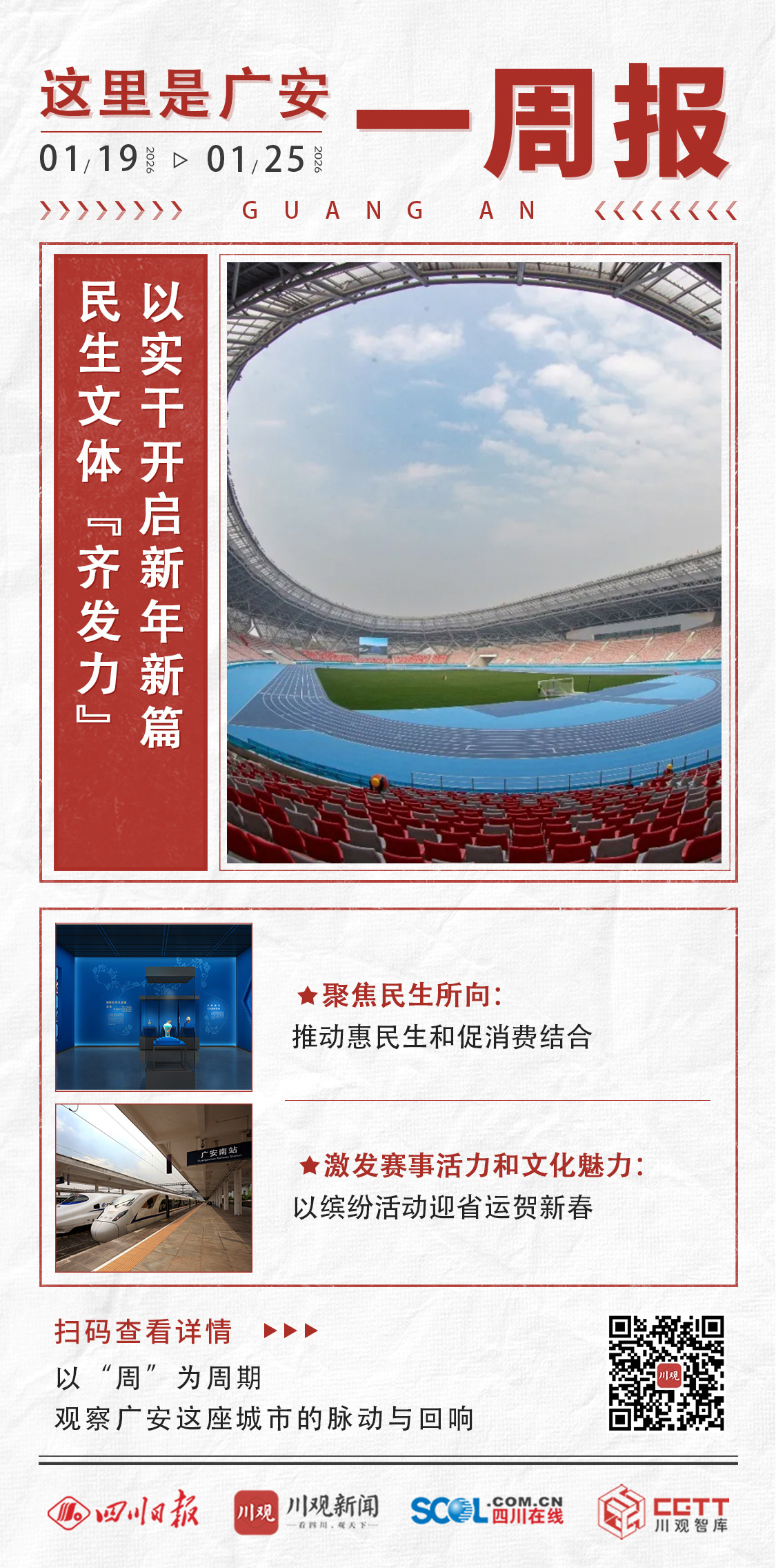 四川在线消息(记者 罗海韵 广安频道 胡力文)本周是2026年第4周,时间为1月19日—1月25日。本周,四川省文化和旅游厅公布2025年国内文化旅游宣传推广典型案例名单,“春节到广安·欢乐过大年”文旅推广活动成功入选。