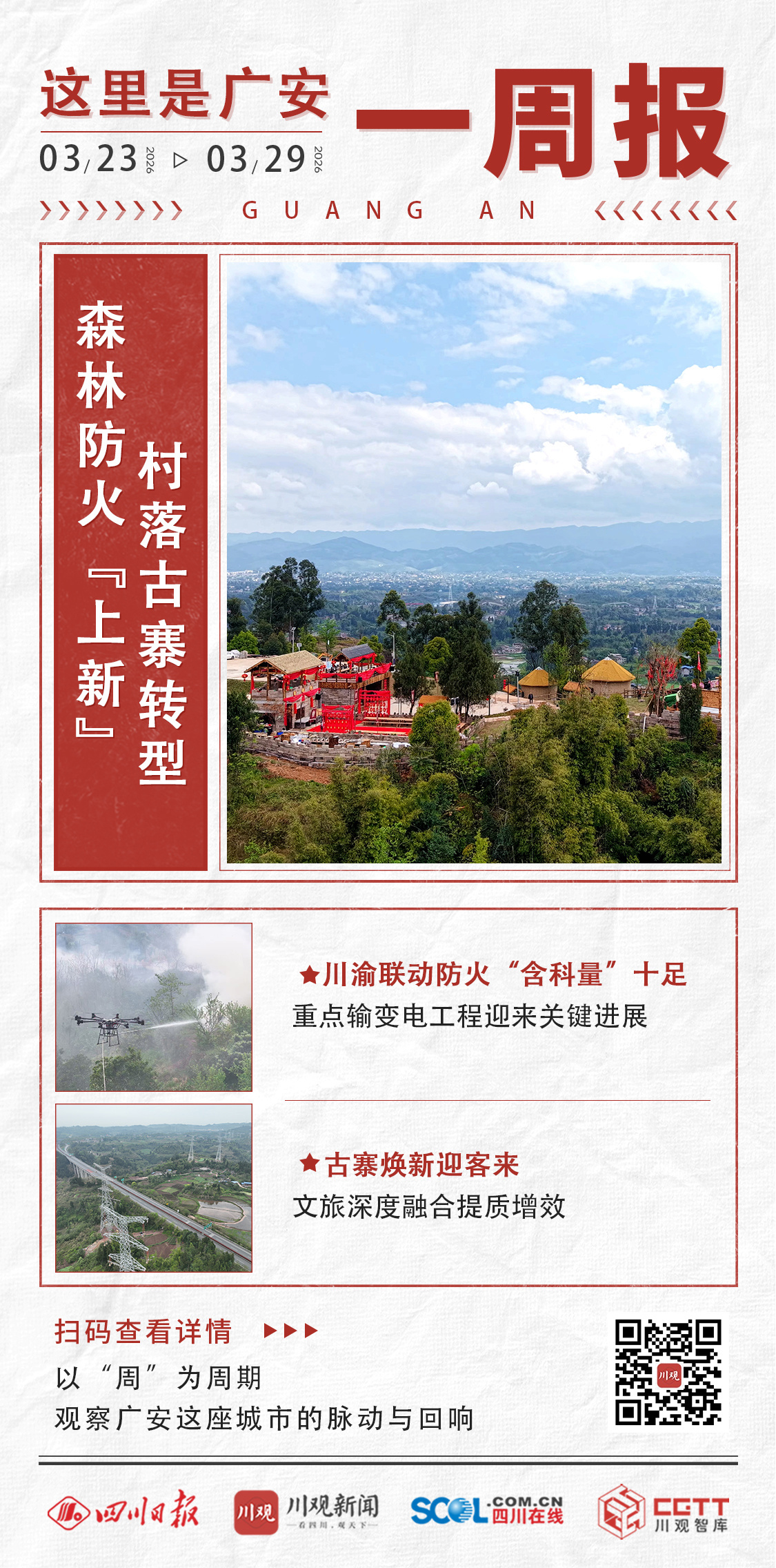 四川在线消息(记者 罗海韵 广安频道 胡力文)3月23日至29日,广安全力保障春耕生产有序进行,同步推进农文旅融合,农户搭上现代农业“快车”,游客尽享限定春日浪漫;川渝联合“战”前练兵,举行森林防灭火实战应急演练;全市文化和旅游发展会议召开之际,《只在·仁和》实景演艺正式上演,展现文旅产业蓬勃发展的脉动。