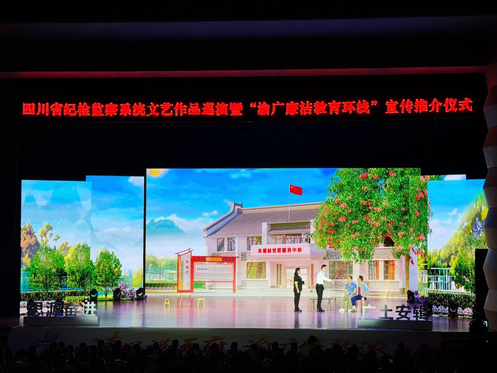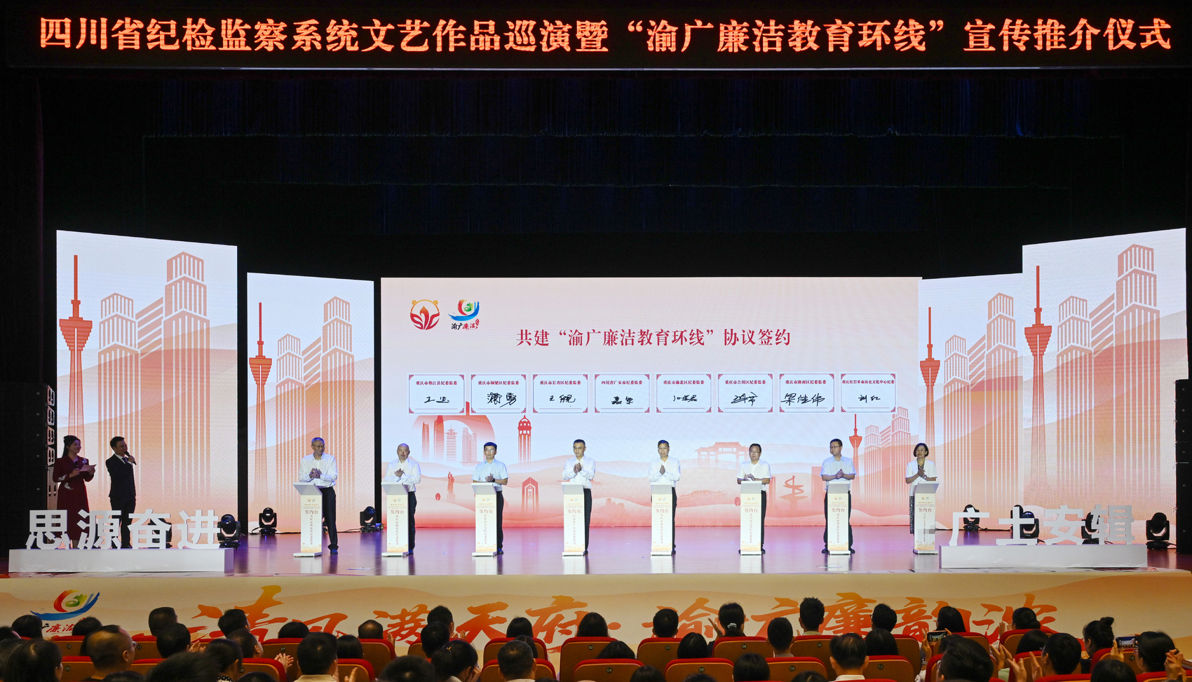 四川在线消息(王林 广安频道 甘文颖 记者 罗海韵)9月29日,四川省纪检监察系统文艺节目巡演暨“渝广廉洁教育环线”宣传推介仪式,在广安市小平干部学院珠海大礼堂举行。