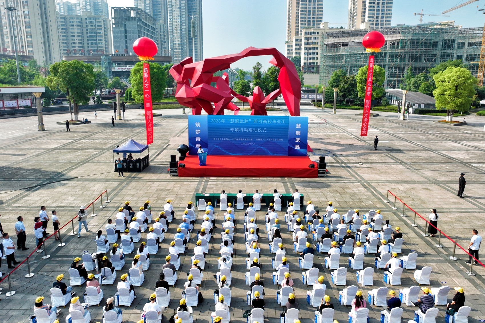 航拍2023年“慧聚武胜”回引高校毕业生专项行动启动仪式。 吴迪 摄